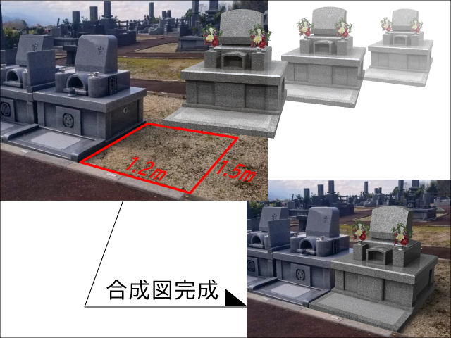 また完成したお墓イメージをお客様の墓地にはめ込む合成写真作成し、周囲とのバランスを含めたご提案をさせていただきます。